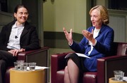 Paola Cappellaro (left), an associate professor in the Department of Nuclear Science and Engineering and Susan J. Hockfield (right), the former President of MIT, share insights during an interdisciplinary panel on women in academia. Hosted by Undergraduate Women in Physics on Wednesday evening in 10-250, the panel featured four female professors and was held in honor of Pressor Dresselhaus’s contributions to women and junior faculty.