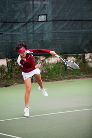 Victoria Tam ’16 serves in a Women’s tennis match against Smith College on Saturday, Oct. 12. MIT won 9-0.