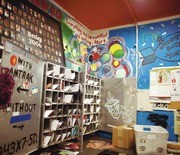 The mailroom at Bexley Hall with a composition of the 2006 residents and other quotes.