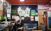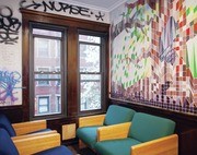A lounge on the second floor of Bexley overlooking the courtyard. The dorm has many creative pockets where residents congregate.