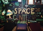 The Space Center lounge in the Bexment, Bexley’s basement, is a common space where students come together. Some of the murals date back to the 1970s and 80s. Many MIT alumni have fond memories of the Bexment and come back to see