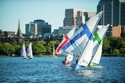Racers sail downward to the finish during MIT Sailing’s Midweek Firefly Regatta.