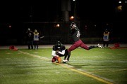 Tucker T. Cheyne ’17 kicks for an extra point during a football game, helping the Engineers secure a win 56-36 against Maine Maritime Academy.