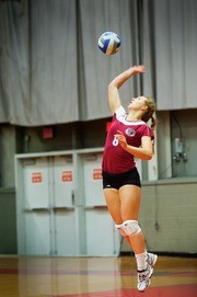 Sarah G. Wilson ’16 prepares to shoot over a Wellesley College defender in a Women’s Water Polo scrimmage.