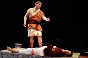 Mark Antony (Zachary D. Tribbett ’13) stands over the dead body of Julius Caesar (Christopher D. Smith ’13) in the MIT Shakespeare Ensemble’s performance of Julius Caesar.