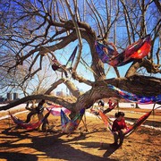 Matthew Santens, the founder of The Elevated Movement, uses recycled plastic to make hammocks.