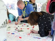A “Prayer Canvas” was laid out in Boston Common, decorated with messages of hope, solidarity, and love for Boston during the marathon. Markers were provided so that anyone could add to the canvas.