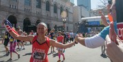 Emotions were high at the finish line of the 118th running of the Boston Marathon on Monday.
