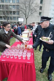 An MIT Police Officer enjoys the food at the community picnic and MIT Strong marathon rally that occurred after the remembrance ceremony last Friday.