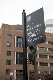 David Mahor, the Mayor of the City of Cambridge, announced last Friday at the ceremony of remembrance that the corner of Main and Vassar Streets shall be designated as “M.I.T. Police Officer Sean A. Collier Square.” A new sign was unveiled at the location shortly after the ceremony concluded.