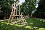 East Campus’s roller coaster under construction for this weekend’s REX.