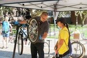 Joanna K. Chen ‘15 receives some bike repair tips from Armando Quiros of Bike Boom in Davis Square during Bike Fest this past Sunday. The event, sponsored by MIT PN2K and GSC Sustainability, was an opportunity for members of the MIT community to get a quick bike tune up, advice on maintenance, and information about bike safety in Cambridge and Boston.