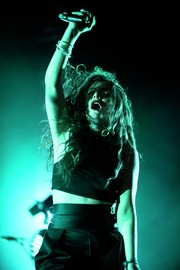 Following a delay for severe weather, Lorde played a shortened fifty minute set on Saturday evening.