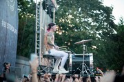 twenty one pilots performed Sunday afternoon and both members left stage to join the crowd. Here drummer Josh Dun crowdsurfed on a platform with a small drum kit.