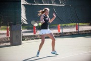 Elysa M Kohrs ’17 snaps a forehand at the MIT Women’s Tennis meet against Babson College on Tuesday. MIT narrowly defeated Babson 5-4.