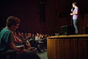 Kumail Nanjiani of HBO’s Silicon Valley draws laughs from the crowd during the UA Fall Festival on Saturday night. Nanjiani was joined by co-star Thomas Middleditch and local comedian Jamie Loftus for a two hour comedy set followed by a meet-and-greet.