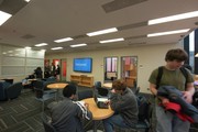EECS undergraduates work in the new EECS Undergraduate Student Lounge on Tuesday. The lounge, located on the first floor of Building 36, opened at the beginning of October and includes rooms for individual study, networking, and conferences.