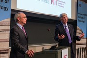 NIH Director Dr. Francis S. Collins, as a part of the Compton Lectures series, gave a talk entitled “Exceptional Opportunities in Biomedical Research” on Tuesday in 10-250. Dr. Collins (right), introduced by MIT president Rafael Reif, answered audience questions after his lecture.