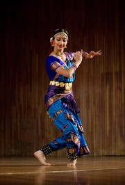 A dancer performs the Kaliya Nartana dance, which demonstrated the story of how Lord Krishna conquered the poisonous serpent Kaliya and danced on its head.