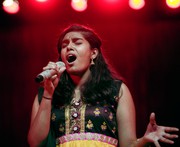 MIT Chamak, a female South Asian fusion dance team, kneels in darkness during a set filled with otherwise upbeat moments.
