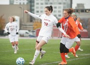 Jennifer R. Ibanez ’16 works her way between a player and the ball during a cold and rainy 3-0 victory over the United States Coast Guard Academy this past Saturday. The No. 1 seeded Engineers play in the New England Women’s and Men’s Athletic Conference Semifinals this Saturday against an opponent to be determined.