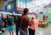 Andrew R. Berta ‘16 tries to pop a balloon held in place by Morgan K. Moroi ‘16.