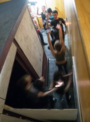 The ceiling of the second room of the haunted house, where teams had to unlock a zombie-filled cabinet in order to get to the next room.