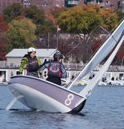 Paige Omura ‘17 and Ty Ingram ‘18 compete in the Crews Regatta on Sunday. Each boat is manned by a skipper and a crew, so in the Crews Regatta, the crew becomes the skipper. Two MIT teams participated, and they placed second and third. BU was the winner.