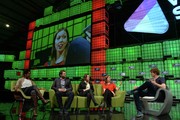 Erica Danielle Swallow, an MBA candidate at the Sloan School of Management, speaks on a panel alongside fellow MBAs during the Web Summit in Dublin.