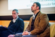 Jean-Luc Schneider (left), deputy director of the Policy Studies and Economics department at the Organization for Economic Cooperation and Development (OECD), and Dr. Daron Acemoglu, an Economics professor at MIT and co-author of the bestseller Why Nations Fail, discuss the recent course of global prosperity and where it is headed in a dialogue moderated by OECD Student Ambassador Caroline B. Shinkle ’15 last Thursday evening in Wong Auditorium.