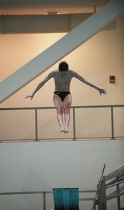 Brian A. Huang ’18 dives during a dual meet against Babson College and Bowdoin College on Saturday afternoon. The Engineers handily won the event with a score of 208-68 against Babson and 196-93 against Bowdoin.