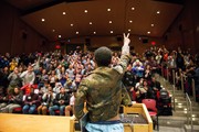 Lil B, the ‘Based God,’ embraces a warm welcome from a completely full lecture hall of MIT students last Friday in 32-123. Lil B, hosted by MIT’s Black Students’ Union, gave a lecture on Based Living.