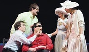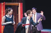 Harry Witherspoon (Michael A. Greshko G) tries to present his dead uncle’s body (Matthew T. Iovino ’17) as alive and well to passersby.