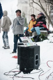 A laptop and speaker system were brought into the East Campus courtyard for music.
