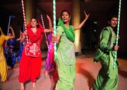 MIT Bhangra dancers (from left) Keerti Shukla ’15, Nikita K. Kodali ’17, and Aneesh M. Anand ’17 perform.