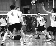 Alexander C. Klein ’15 bats the ball after a diving save by Thomas F. Leech ’18 kept the point alive during a game against Lehman College on Friday, April 3. The game was part of the Scramble Tournament, which MIT dominated, winning all four of its games 3-0.