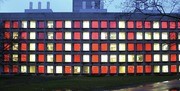 On the day of the divestment debate organized by MIT, activists put on a display reading “DIVEST” in the windows of the five floors of Building 18.