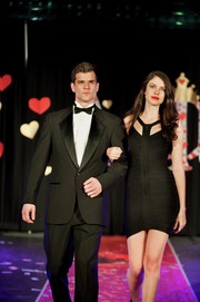 Nichola H. Uhlenhuth ’16 and Meryl E. Gibbs ’16 walk down the runway during the formal wear portion of the competition.