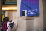 A student takes a picture of a hack commemorating “Back to the Future Day” on Wednesday. The “flux capacitor” sat on a pedestal in Lobby 7.