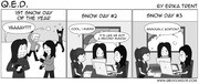 Students attempt to bury the sculpture “Transparent Horizon” in snow on Tuesday following a record-breaking period of snowfall.