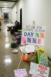 Members of Fossil Free MIT wrap up day 28 of their sit-in protesting the Institute’s decision to not divest its endowment from fossil fuel companies.