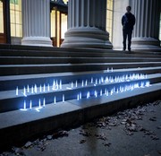 Participants in a silent walk against terrorism placed lights on the steps outside Memorial Lobby (Lobby 10) as symbols of hope, remembrance, and solidarity on Wednesday evening.