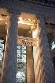 Hackers hung a banner outside Lobby 7 to commemorate the death of David Bowie.