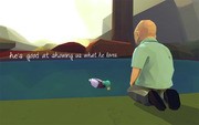 Joel giggles and feeds a duck in a scene at the start of That Dragon, Cancer.