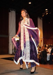 Nikita K. Kodali ’17 models a Pakistani outfit during the fashion show portion of Rawaj.