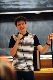 Gabriel A. Alba-Rivera ’17 retells a story last Friday night during a performance for an IAP stand-up comedy course.