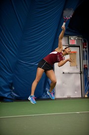 Sonya A. Das ’18 serves the ball during last Friday’s 9-0 win against Brandeis University.