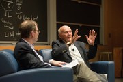Apollo 11 astronaut Michael Collins answers an audience member’s question during a discussion about lessons learned from his career on Wednesday afternoon in 32-123. Collins, who piloted the command module during the first moon landing, drew frequent laughs as he shared his thoughts on a variety of topics during the two-hour event.