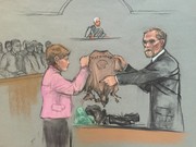 Massachusetts chief medical examiner Henry Nields presents the tattered clothes of 8-year-old Martin Richards, who died in the Boston Marathon bombings.