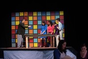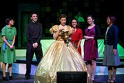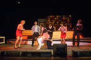 The ensemble (Kristina S. Kim ’17, Jeremy T. Wright ’17, Sienna A. Ramos ’18, Leigh-Ana Rossitto ’19, Amanda J. Liu ’17) happily watches as Violet Newstead (Hallie N. Voulgaris ’17) prepares a potion to make Frank Hart (Geoffrey W. Hegg ’16) disappear during a dream sequence.